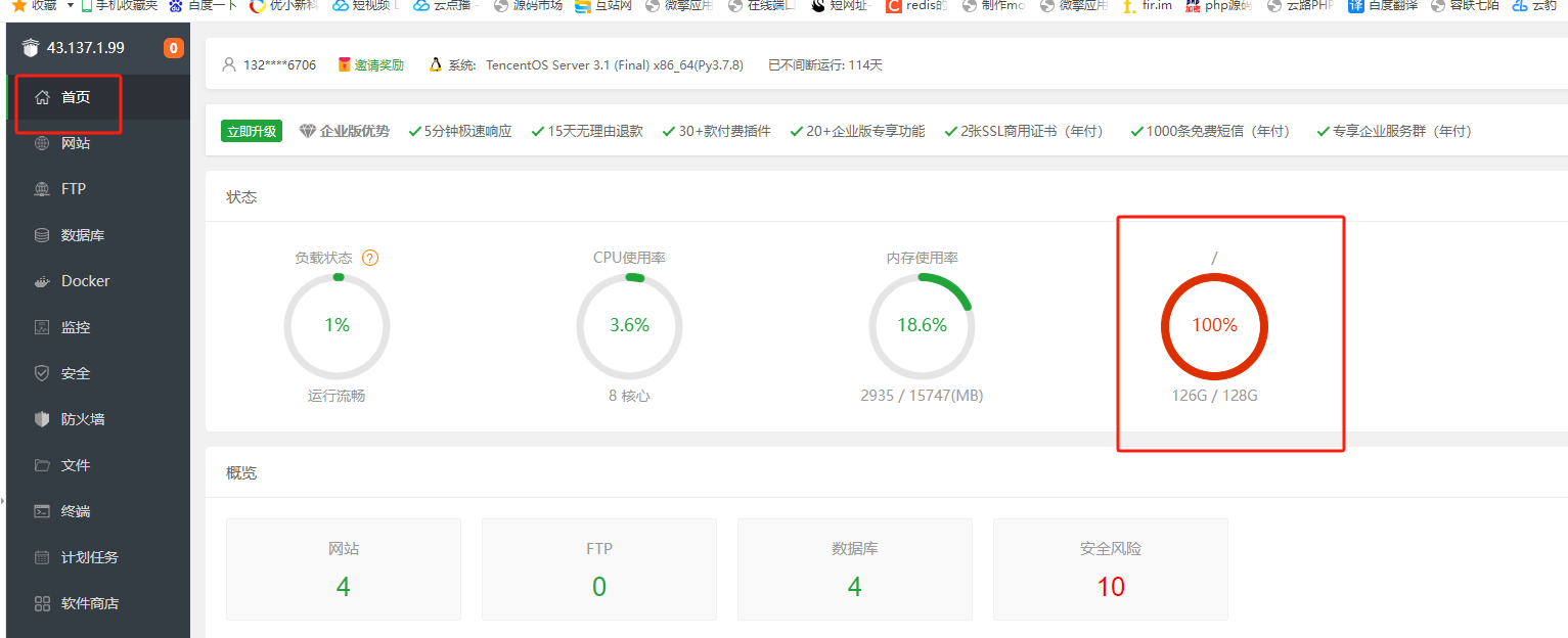 1.磁盘如果满了,把项目的runtime文件删除并清理回收站,把打印日志功能关闭,就可以访问了;